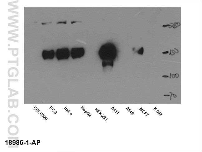 - WB result of anti-EGFR (18986-1-AP) in different cell lysates.
