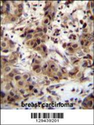- ZNF321 Antibody (N-term) (Cat. #AP11412a)immunohistochemistry analysis in formalin fixed and paraffin embedded human breast carcinoma followed by peroxidase conjugation of the secondary antibody and DAB staining.This data demonstrates the use of ZNF321 Antibody (N-term) for immunohistochemistry. Clinical relevance has not been evaluated.