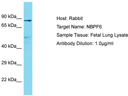 - Host: Rabbit; Target Name: NBPF6; Sample Tissue: Fetal Lung lysates; Antibody Dilution: 1.0 ug/ml