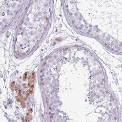 - Immunohistochemistry: NBPF4 Antibody [NBP2-46749] - Staining of human testis shows moderate positivity in Leydig cells.