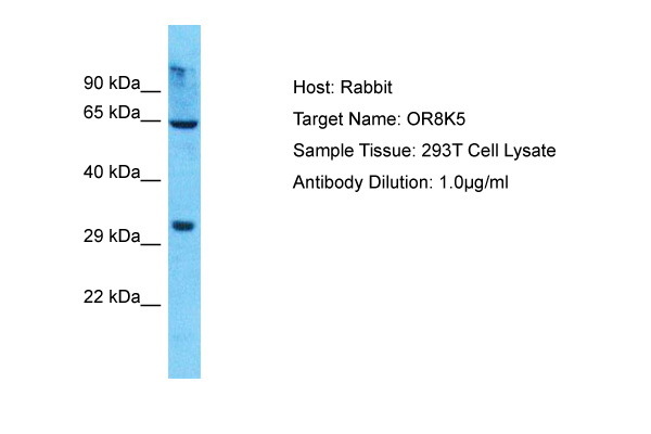 - Host: Rabbit Target Name: OR8K5 Sample Tissue: 293T Whole Cell lysates Antibody Dilution: 1.0µg/ml