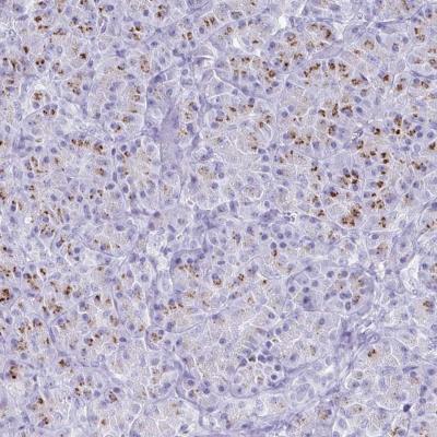- Immunohistochemistry-Paraffin: SDR42E2 Antibody [NBP2-32346] - Staining of human pancreas shows strong cytoplasmic (dot-like) positivity in exocrine glandular cells.