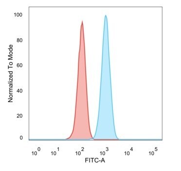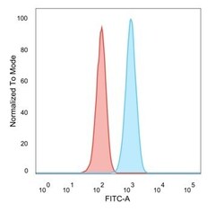 - Flow Cytometry analysis of PFA-fixed HeLa cells using SCXA Monoclonal Antibody (Product # 642658-MSM2-P1) followed by goat anti-mouse IgG-CF488 (blue); unstained cells (red).