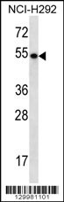 - TBC1D3E Antibody (C-term) (Cat. #AP12276b) western blot analysis in NCI-H292 cell line lysates (35ug/lane).This demonstrates the TBC1D3E antibody detected the TBC1D3E protein (arrow).