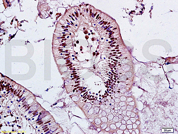 - Formalin-fixed and adjacent noncancerous of human colon tissue labeled with Anti-Mel18/ZNF144 Polyclonal Antibody, Unconjugated (bs-9673R) at 1:200 followed by conjugation to the secondary antibody and DAB staining