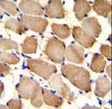 - ARL17P1 Antibody immunohistochemistry of formalin-fixed and paraffin-embedded human skeletal muscle followed by peroxidase-conjugated secondary antibody and DAB staining.