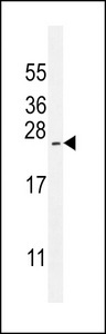 - ARL17P1 Antibody western blot of NCI-H460 cell line lysates (35 ug/lane). The ARL17P1 antibody detected the ARL17P1 protein (arrow).