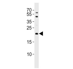 - Western blot testing of human MCF7 cell lysate with TIMM23 antibody. Predicted molecular weight ~22 kDa.