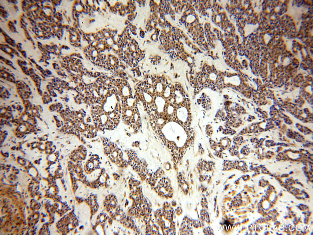 - Immunohistochemical of paraffin-embedded human cervical cancer using 20348-1-AP(SMEK2 antibody) at dilution of 1:100 (under 10x lens)