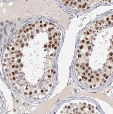 - Immunohistochemistry-Paraffin: SMEK2 Antibody [NBP1-83882] - Staining of human testis shows moderate to strong nuclear positivity in glandular cells.