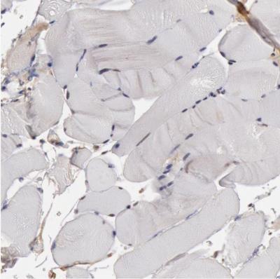 - Immunohistochemistry-Paraffin: SMEK2 Antibody [NBP1-83882] - Staining of human skeletal muscle shows no positivity in myocytes as expected.