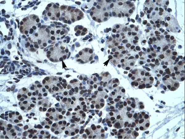 - TPTE antibody ARP36750_T100-NP_954870-TPTE (transmembrane phosphatase with tensin homology) Antibody was used in IHC to stain formalin-fixed, paraffin-embedded human pancreas. This image was taken for the unconjugated form of this product. Other forms have not been tested.