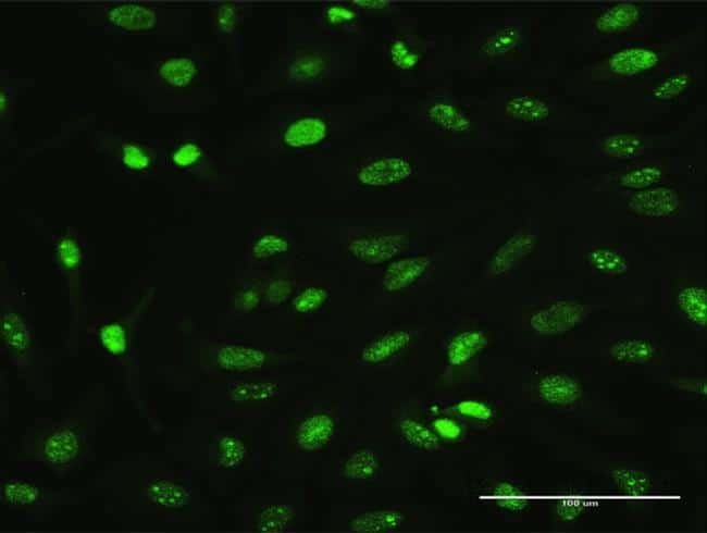 - Immunofluorescent analysis of MAGEA2 in HeLa cell lysates. Samples were probed using a Mouse Monoclonal MAGEA2 (1B1) Antibody (Product # MA5-24545) at 20 µg/mL.