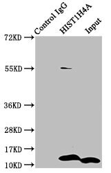 - Immunoprecipitation analysis of H4K5cr in Hela whole cell lysate using a Polyclonal antibody (Product #PA5-112543). Samples were treated with 5 µg of the primary antibody and an HRP-conjugated Protein G secondary antibody was used at a dilution of 1:2,000. Lane 1: Rabbit control IgG, Lane 2: 500 µg of Hela whole cell lysate, Lane 3: 20 µg of Hela whole cell lysate.