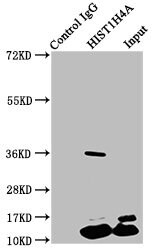- Immunoprecipitation analysis of H4K5pr in Hela whole cell lysate using a Polyclonal antibody (Product #PA5-112545). Samples were treated with 5 µg of the primary antibody and an HRP-conjugated Protein G secondary antibody was used at a dilution of 1:2,000. Lane 1: Rabbit control IgG, Lane 2: 500 µg of Hela whole cell lysate, Lane 3: 20 µg of Hela whole cell lysate.