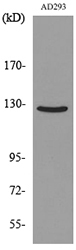- Western blot analysis of lysate from AD293 cells, using ABL2 Antibody.