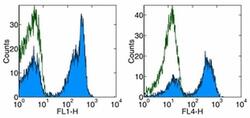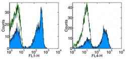 - Staining of mouse splenocytes with Anti-Human/Mouse CD45R (B220) FITC (left) or APC (right).Appropriate isotype controls were used (open histogram).Total viable cells were used for analysis.