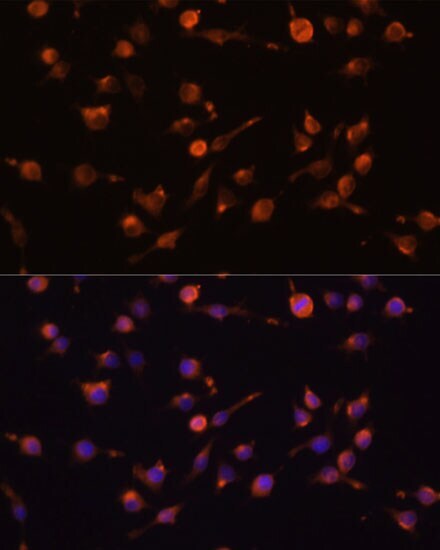 - Immunocytochemistry-Immunofluorescence analysis of CD45 was performed in RAW264.7 cells using CD45 Polyclonal Antibody (Product # PA5-87427) at a dilution of 1:100. Blue: DAPI for nuclear staining.