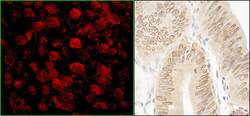 - Detection of human NARG1 by immunohistochemistry. Sample: FFPE sections of human testicular seminoma (left) and colon carcinoma (right). Antibody: Affinity purified rabbit anti-NARG1 (Cat. No. A302-147A Lot1) used at a dilution of 1:80 (2.5 µg/ml) and 1:200 (1µg/ml). Detection: Red-fluorescent goat anti-rabbit IgG-heavy and light chain, cross-adsorbed Antibody DyLight® 594 Conjugated used at a dilution of 1:100 and DAB.
