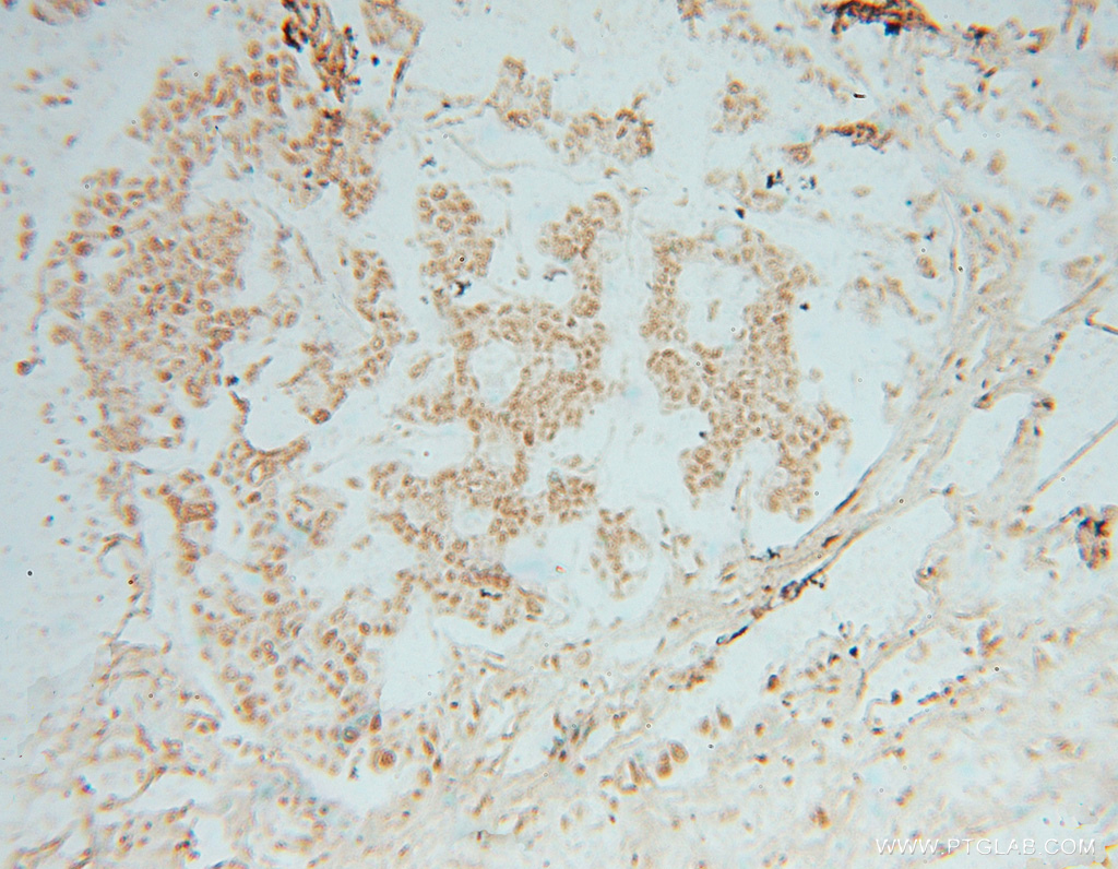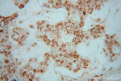 - Immunohistochemical of paraffin-embedded human breast cancer using 16047-1-AP(HIST1H4E antibody) at dilution of 1:50 (under 10x lens)