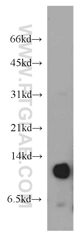 - mouse thymus tissue were subjected to SDS PAGE followed by western blot with 16047-1-AP(HIST1H4E antibody) at dilution of 1:500