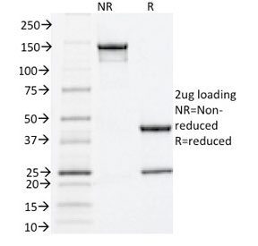 - SDS-PAGE analysis of purified, BSA-free Estrogen Receptor alpha antibody (clone ESR1/1935) as confirmation of integrity and purity.