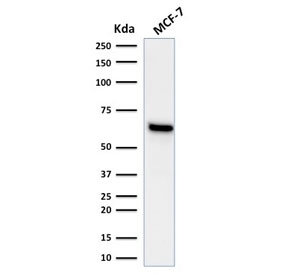 - Western blot testing of human MCF-7 lysate with Estrogen Receptor alpha antibody (clone ESR1/1935). Expected molecular weight ~67 kDa.