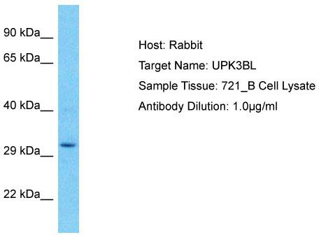 - Host: Rabbit; Target Name: UPK3BL; Sample Tissue: 721_B Whole Cell lysates; Antibody Dilution: 1.0ug/ml