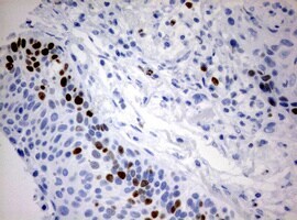 - Immunohistochemical staining of paraffin-embedded Adenocarcinoma of Human endometrium tissue using anti-MKI67 mouse monoclonal antibody. (Heat-induced epitope retrieval by 10mM citric buffer, pH6.0, 120°C for 3min, TA802432)