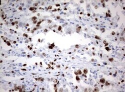 - Immunohistochemical staining of paraffin-embedded Carcinoma of Human lung tissue using anti-MKI67 mouse monoclonal antibody. (Heat-induced epitope retrieval by 10mM citric buffer, pH6.0, 120°C for 3min, TA802432)