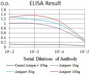 - Red: Control Antigen (100ng);Purple: Antigen (10ng);Green: Antigen (50ng);Blue: Antigen (100ng);