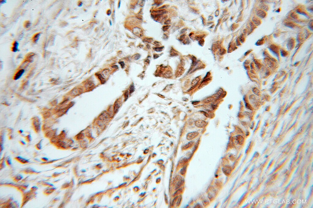 - Immunohistochemistry of paraffin-embedded human ovary tumor using 11074-2-AP (BORIS antibody) at dilution of 1:50 (under 40x lens).