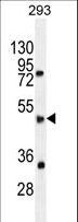 - SPDYE5 Antibody western blot of 293 cell line lysates (35 ug/lane). The SPDYE5 antibody detected the SPDYE5 protein (arrow).
