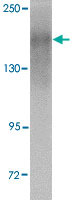 - Western blot analysis of NPC1 in human kidney tissue lysate with NPC1 polyclonal antibody (Cat # PAB16750) at 1 ug/mL .
