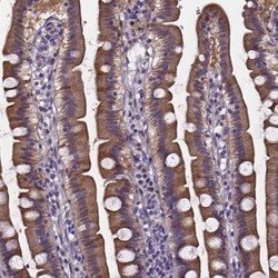 - Immunohistochemistry: SOWAHA Antibody [NBP2-38055] - Staining of human duodenum shows strong cytoplasmic and membranous positivity in glandular cells.