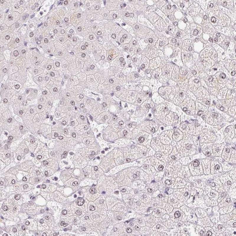 - Immunohistochemical staining of CWC25 in human liver using CWC25 Polyclonal Antibody (Product # PA5-64082) shows low expression as expected.