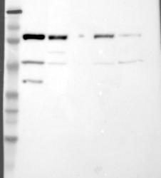 - Western blot analysis of antibody specificity using a routine panel composed of IgG/HSA-depleted human plasma and protein lysates from selected human tissues and cell lines.