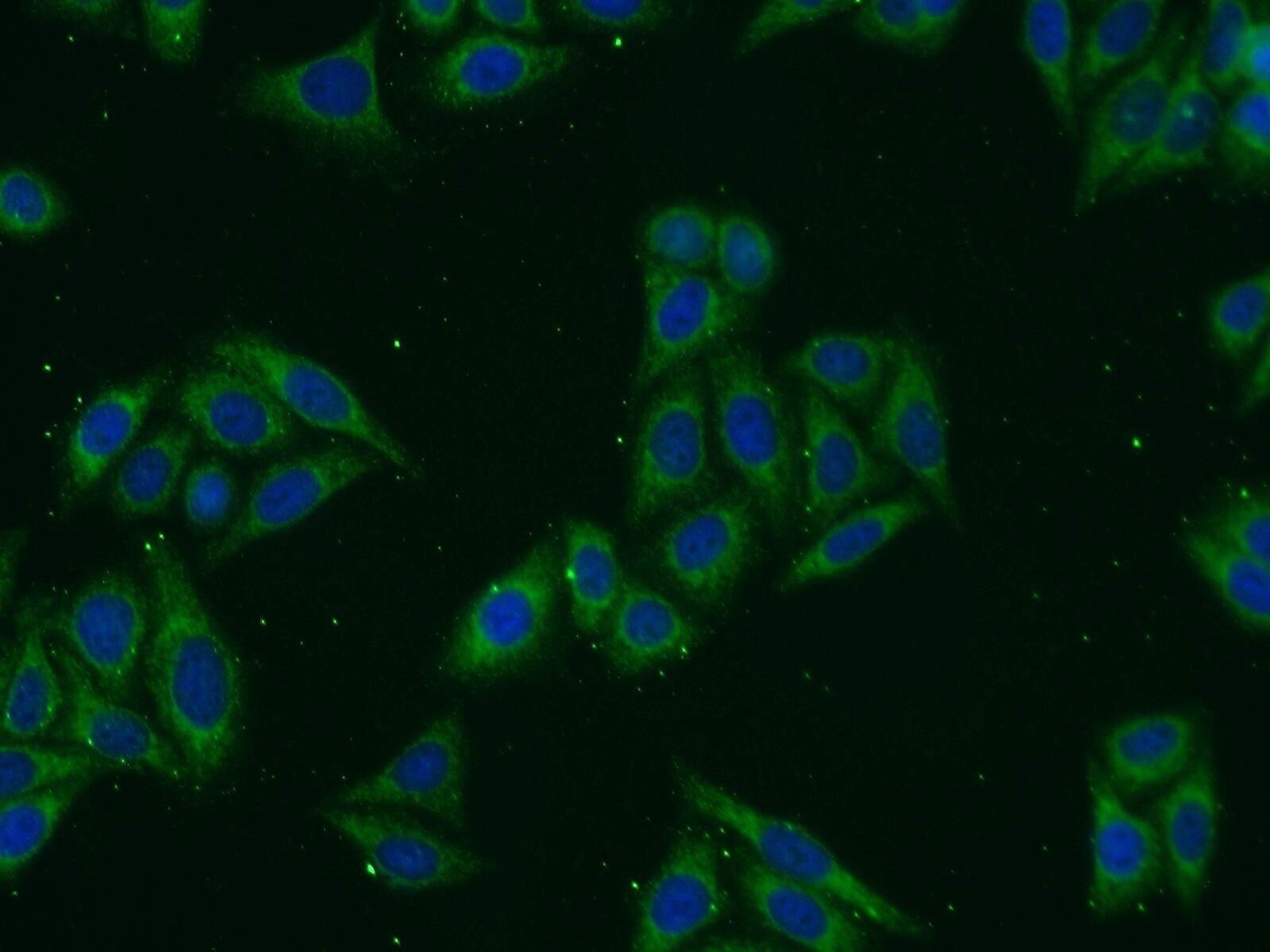 - Immunofluorescent analysis of HepG2 cells using 17815-1-AP (Syntaxin 17 antibody) at dilution of 1:50 and Alexa Fluor 488-conjugated AffiniPure Goat Anti-Rabbit IGG (H+L).