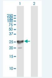 - Western Blot: CT45A4 Antibody [H00441520-B01P-50ug] - Analysis of CT45-4 expression in transfected 293T cell line (H00441520-T01) by CT45-4 MaxPab polyclonal antibody. Lane 1: CT45-4 transfected lysate(20.79 KDa). Lane 2: Non-transfected lysate.