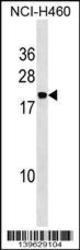 - PPIAL4A Antibody (Center) western blot analysis in NCI-H460 cell line lysates (35ug/lane).This demonstrates the PPIAL4A antibody detected the PPIAL4A protein (arrow).