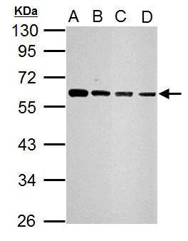 - Sample (30 ug of whole cell lysate) A: Raji B: K562 C: HL-60 D: NCI-H929 10% SDS PAGE GTX111393 diluted at 1:10000