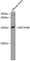 - Western Blot analysis of HIST1H4B in extracts of mouse brain using HIST1H4B Polyclonal Antibody (Product # PA5-97069) at a dilution of 1:1000. A HRP Goat Anti-Rabbit IgG (H+L) secondary antibody was used at a dilution of 1:10,000. Lysates/proteins: 25 µg per lane. Blocking buffer: 3% nonfat dry milk in TBST.