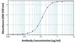 - Direct ELISA analysis of hCG proteins was performed by coating wells of a plate with a hCG protein extracted from human urine at a concentration of 10 µg/mL overnight at 4C. The plate was washed 3 times with ELISA Wash Buffer (Product # N503) and blocked with 300 µL of StartingBlock (PBS) Blocking Buffer (Product # 37538) for at least 1 hour at room temperature. After washing 100 µL of hCG monoclonal antibody (Product # MA5-14680) was added to wells in duplicate at 10, 5, 2.5, 1.25, 0.62, 0.31, 0.15, 9.5, 0.078, 0.039, 0.019 and 0 µg/mL concentrations, and the samples were incubated for 2 hours at room temperature. The plate was washed, and then incubated with 100 µL per well of an HRP-conjugated goat anti-mouse IgG secondary antibody (Product # 31430) at a dilution of 1:10,000 for 1 hour at room temperature, and washed again with ELISA Wash Buffer. The plate was developed by incubating 100 µL per well of 1-Step Ultra TMB substrate (Product # 34028) per well for 10 minutes at room temperature in the dark. The reaction was stopped with 100 µL per well of 0.16M sulfuric acid. Absorbances were read on a spectrophotometer at 450-550 nm.