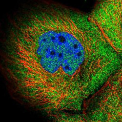 - Immunofluorescent staining of human cell line A-431 with ANKHD1-EIF4EBP3 polyclonal antibody (Cat # PAB27464) at 1-4 ug/mL dilution shows positivity in nucleus but not nucleoli and cytoplasm.
