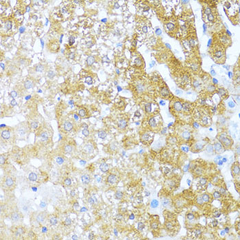 - Immunohistochemistry of paraffin-embedded rat liver using Alpha-1 Antichymotrypsin (Alpha-1 Antichymotrypsin (SERPINA3) ) antibody (STJ116187) at dilution of 1:100 (40x lens).