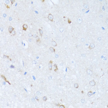 - Immunohistochemistry of paraffin-embedded rat brain using Alpha-1 Antichymotrypsin (Alpha-1 Antichymotrypsin (SERPINA3) ) antibody (STJ116187) at dilution of 1:100 (40x lens).