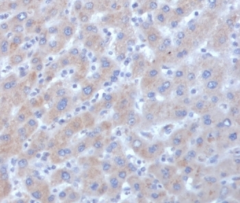 - IHC staining of FFPE human liver tissue with Alpha-1-Antichymotrypsin antibody (clone SERPINA3/4185). HIER: boil tissue sections in pH 9 10mM Tris with 1mM EDTA for 20 min and allow to cool before testing.