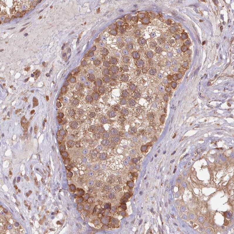 - Immunohistochemical analysis of FAM21A in human testis using FAM21A Polyclonal Antibody (Product # PA5-61604) shows strong cytoplasmic positivity in cells in seminiferous ducts.