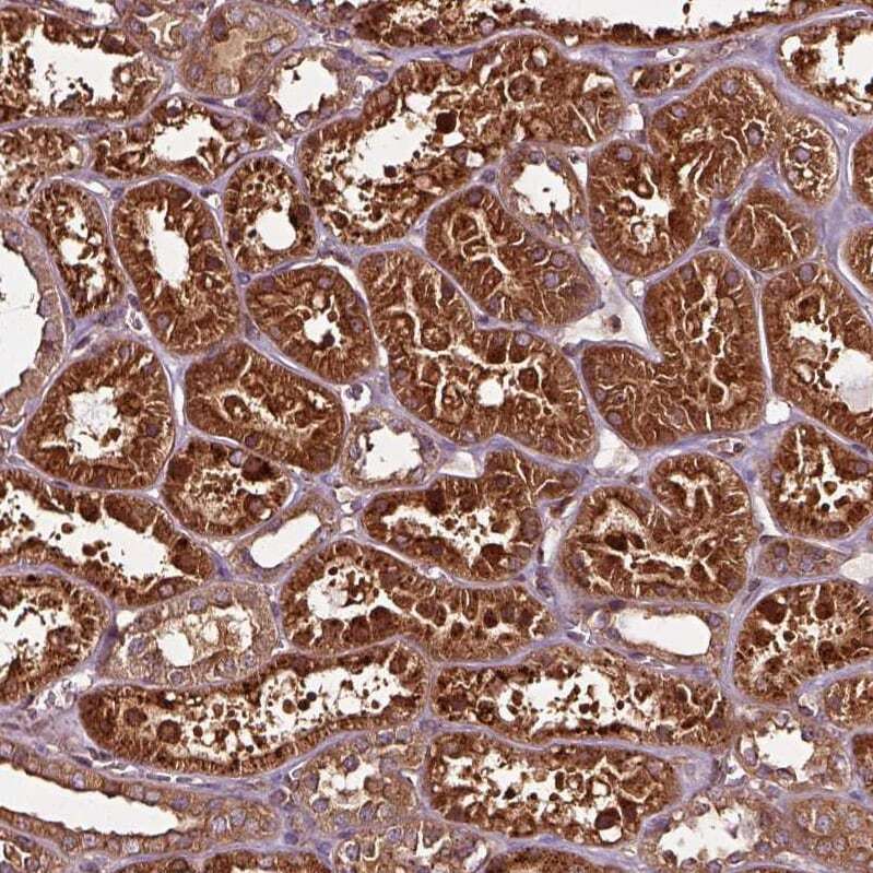- Immunohistochemical analysis of FAM21A in human kidney using FAM21A Polyclonal Antibody (Product # PA5-66355) shows strong cytoplasmic granular positivity in cells in tubules.