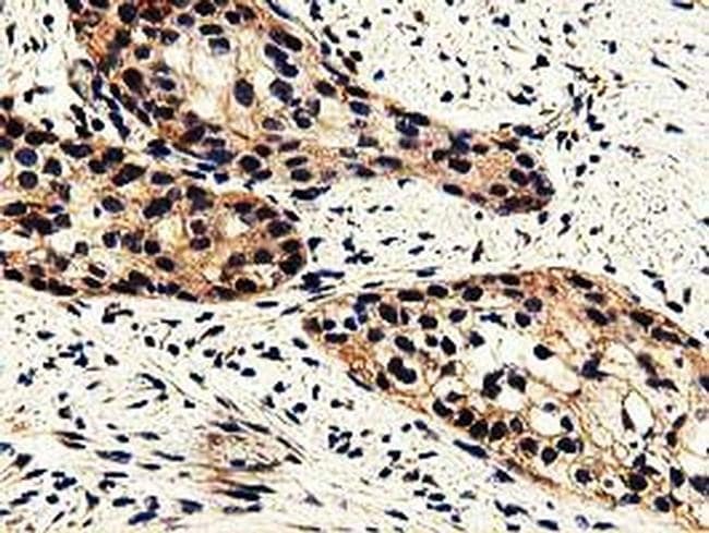 - Immunohistochemical analysis of GSTT2 in paraffin-embedded carcinoma of human lung tissue using a GSTT2 monoclonal antibody (Product # MA5-25270) at a dilution of 1:150.